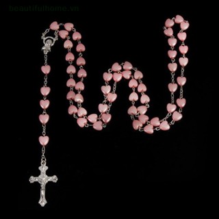 [beautifulhome] Vòng cổ Chuỗi Hạt Mặt Thánh Giá Màu Hồng Thời Trang [beauty]