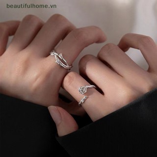 1 Cặp Nhẫn Hoa Hồng Màu Bạc Bằng Kim Loại Tùy Chỉnh Thời Trang Cho Nam Và Nữ