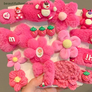 Bộ 8 / 10 Kẹp Tóc Hình Gấu / Dâu Tây Phủ Lông Thời Trang Mùa Đông Xinh Xắn Cho Bé