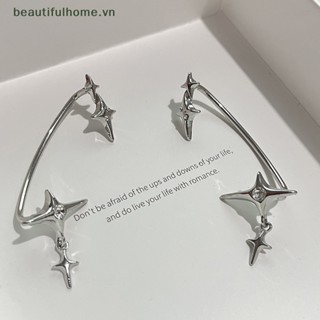 1 Đôi Bông Tai Kẹp Hình Ngôi Sao Màu Bạc Đính Đá Zircon Không Đối Xứng Phong Cách Gothic Thời Trang Cho Nữ