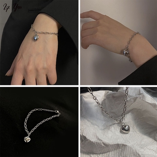 Vòng đeo tay kim loại mặt hình trái tim màu bạc phong cách retro Hàn Quốc thời trang làm quà tặng dành cho nữ