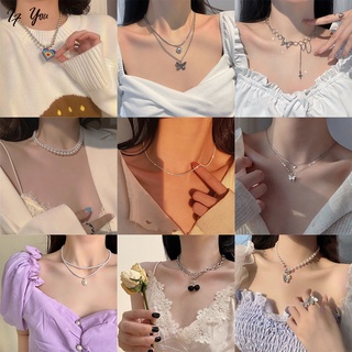 Vòng cổ Choker AY đính hạt ngọc trai mặt hình bướm trái tim thanh lịch dành cho nữ