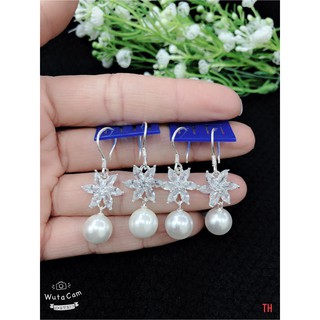 Hoa tai nữ moc treo hoa 6 cánh bạc ta và trai mẫu mới