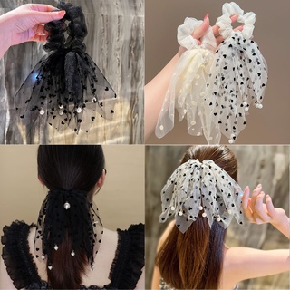 Dây Buộc Tóc Cao Cấp Họa Tiết Chấm Bi Thắt Nơ Bằng Sợi Thủy Tinh Thanh Lịch Cho Nữ