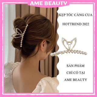 Kẹp tóc càng cua Hàn Quốc cặp tóc đính hạt trai trắng hot trend Ame Beauty