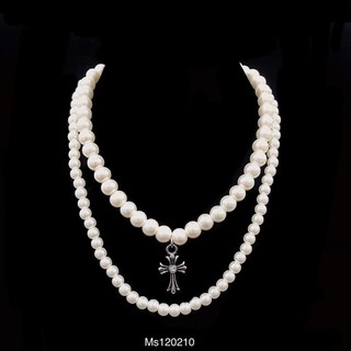 Vòng cổ hạt ngọc mix chữ thập đá cá tính - vòng cổ unisex