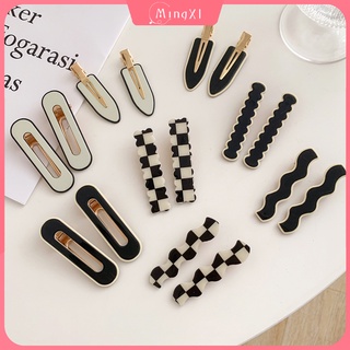 Kẹp Tóc Kẻ Sọc Ca Rô Trắng Đen Phong Cách Hàn Quốc Cổ Điển Bằng Hợp Kim Dành Cho Nữ