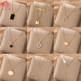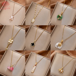 Vòng cổ Thép Titan 18k Mặt Cỏ Bốn Lá Và Vỏ Sò Cho Nữ (Hộp Trang Sức)