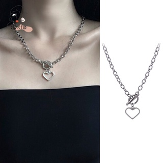 Vòng cổ Hai Lớp Bằng Thép Titan Màu Đen Mặt Trái Tim Phong Cách Hip Hop Hàn Quốc Cho Nữ