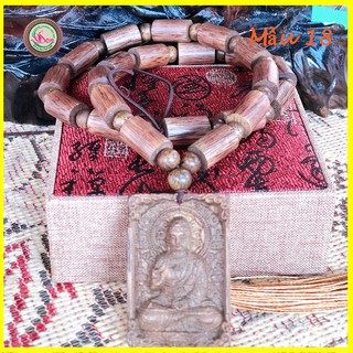 Vòng Cổ Trầm Hương Tốc cao cấp tự nhiên 100% - Mẫu 18 - 12 ly và tượng [Trầm Hương Búp Sen]
