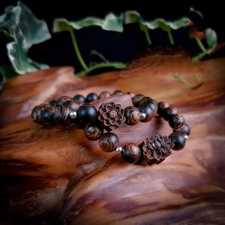 Vòng tay Trầm Hương Sánh chìm phối hoa - 8 ly - (Trầm Hương Búp Sen)