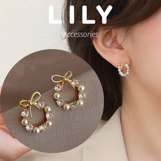Bông Tai Nữ Gắn Nơ Mặt Đá Nhân Tạo Lấp Lánh Thanh Lịch LILY V1.3