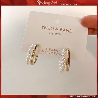 Khuyên Tai Kim Loại Đính Hạt Ngọc Trai Nhân Tạo Phong Cách Hàn Quốc