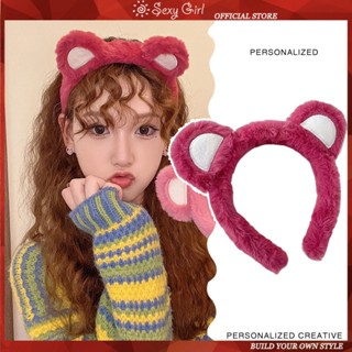 Băng đô cài tóc rửa mặt Hình Tai Gấu / Dâu Tây Bằng Vải Lông Nhung Màu Hồng Dễ Thương Xinh Xắn