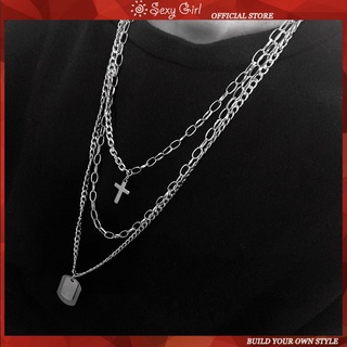 Dây Chuyền Nhiều Lớp Bằng Bạc Phong Cách Hiphop Punk Quyến Rũ Cho Nữ