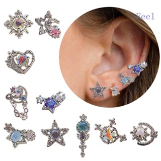 Khuyên Tai Hình Ngôi Sao Năm Cánh Trái Tim Ngọt Ngào Bằng Thép Không Gỉ Phong Cách Punk Hàn Quốc