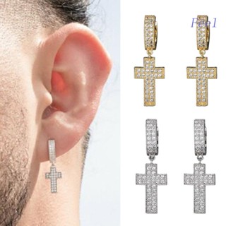 Bông Tai Dạng Vòng Màu Vàng / Bạc Thiết Kế Mặt Thánh Giá Độc Đáo Thời Trang Cho Nữ