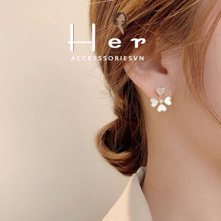 Bông Tai Nữ Cỏ 4 Lá, chuôi bạc 925 Her Accessories H118