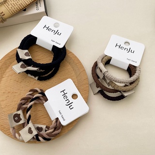 MOCHASHU Bộ 4 món dây buộc tóc đen đơn giản phong cách Hàn Quốc 2023 phụ kiện thời trang nữ mới