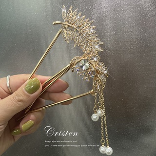 MOCHASHU Trâm cài tóc bằng kim loại dạng hình chữ U đính ngọc trai nhân tạo phong cách cổ điển
