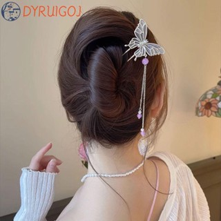 DYRUIDOJ Kẹp Tóc Kim Loại Hình Bướm Đính Hạt Tua Rua Phong Cách Trung Hoa Ngọt Ngào Cho Bé Gái