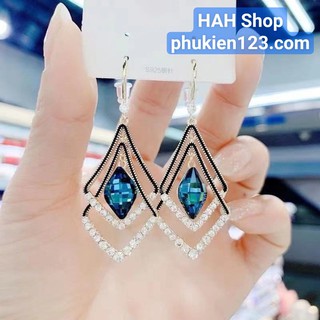 Bông tai hình thoi kép đính đá phong cách Hàn QuốcBông tai mẫu mới 2022
