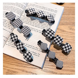 Dây Cột Tóc Bản Rộng Họa Tiết Caro Trắng Đen Phong Cách Hàn Quốc Cho Nữ