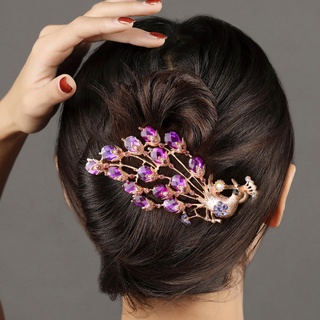 Kẹp Tóc Hình Con Công Đính Đá Phong Cách Retro