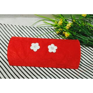 Dây cột tóc hoa mai và nơ đỏ siêu xinh