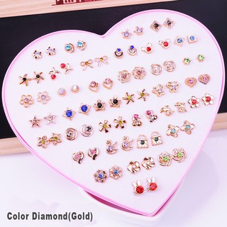 Set 36 đôi hoa tai đinh tán đính đá phong cách thời trang Hàn Quốc cho bé gái