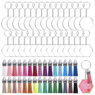 Set 120 Móc Khóa Đĩa Acrylic Trong Suốt Kèm Dây Tua Rua DIY