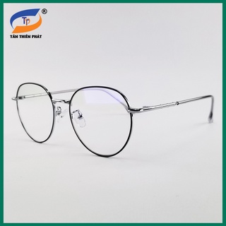 Gọng kính nam nữ kim loại mắt tròn màu đen, bạc 2999. Tròng giả cận 0 độ chống ánh sáng xanh, tia UV
