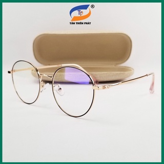 Gọng kính cận nữ, nam mắt giả cận tròn kim loại màu bạc, vàng hồng 29203. Tròng 0 độ, chống ánh sáng xanh, tia UV