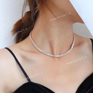 Dây chuyền nữ inox chuỗi đá chữ nhật đẹp, sang trọng không đen