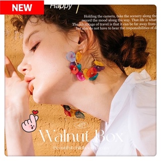 Khuyên Tai Hình Vuông Nhiều Màu Sắc Phong Cách Pháp Cổ Điển Sang Trọng