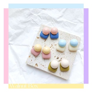 Bông Tai Bạc 925 Hình Bán Nguyệt / Vuông Phối Màu Tương Phản Dễ Thương