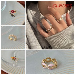 CLEOES Nhẫn Hở Mạ Vàng 2K Mặt Hình Hoa Và Chim Phong Cách Hàn Quốc Cổ Điển