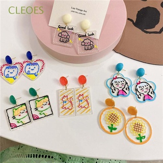 Bông Tai Hình Tròn / Vuông / Mèo Trong Suốt Phong Cách Retro