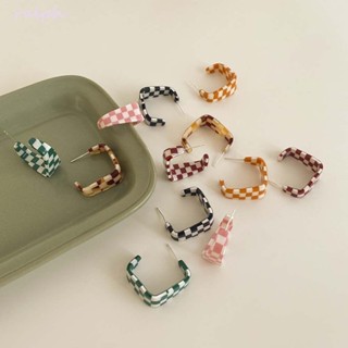 Bông Tai Acrylic Dáng Vuông Họa Tiết Hình Học Độc Đáo Thời Trang