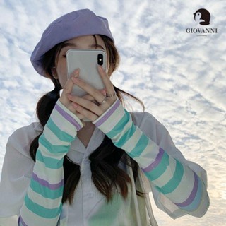 Găng Tay Chống Nắng Vải Lụa Lạnh Co Giãn Thoáng Khí Y2k Họa Tiết Kẻ Sọc Cầu Vồng