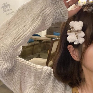 Kẹp tóc hình chú gấu hoạt hình dễ thương vải lông phong cách Hàn Quốc cổ điển đơn giản nhiều màu tùy chọn cho bạn nữ