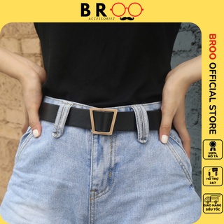 Đai váy thắt lưng nữ mặt tam giác BROO có đục lỗ bản nhỏ 1.1cm, dây nịt lưng da PU cao cấp