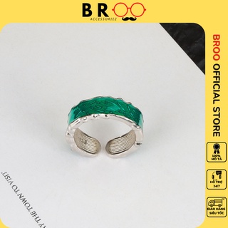 Nhẫn titan xanh rêu BROO unisex màu bạc đẹp thời trang freesize cho nam, nữ, cặp đôi