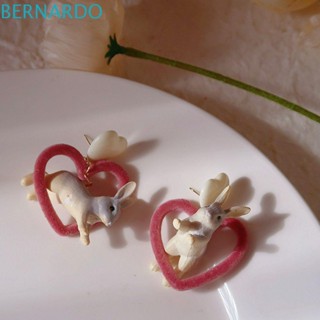Bernardo Bông Tai Ba Chiều Hình Thỏ Trắng Trái Tim Thời Trang Ngọt Ngào Bằng Nhựa Resin Làm Quà Tặng Cho