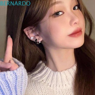 BERNARDO Bông Tai Dạng Xỏ Hình Trái Tim Đính Đá Đơn Giản Phong Cách Hàn Quốc Cho Nữ