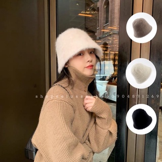 Mũ Bucket Xô Lông Thỏ Mềm Mịn Vành Ngắn Giữ Ấm Mùa Đông Siêu Xinh Uzzlang Hàn Quốc
