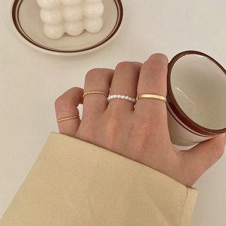 Set nhẫn đeo ngón tay bằng kim loại đính hạt ngọc trai giả thời trang tinh tế cho nữ