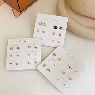 Set 6 khuyên tai bạc S926 hình trái tim đính ngọc trai giả cá tính dễ phối đồ