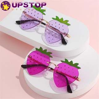 UPSTOPVN Kính Mát Không Gọng Họa Tiết Dâu Tây Bằng Kim Loại Thời Trang Y2K Cho Lễ Hội / Tiệc / Rave