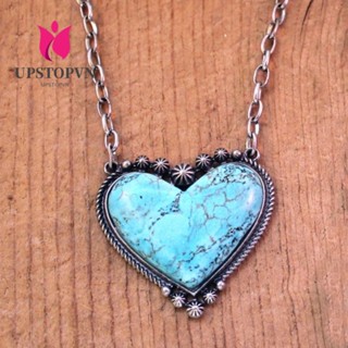 UPSTOPVN Vòng cổ Hợp Kim Mặt Đá Ngọc Lam Giả Hình Trái Tim Phong Cách Dân Tộc Vintage Cho Nữ